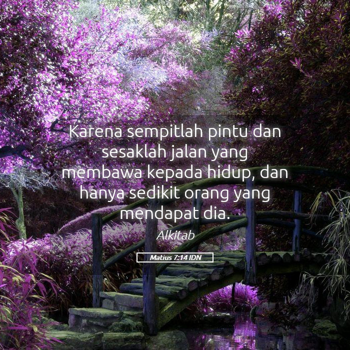"Karena sesaklah pintu dan sempitlah jalan yang menuju kepada kehidupan, dan sedikit orang yang mendapatinya."