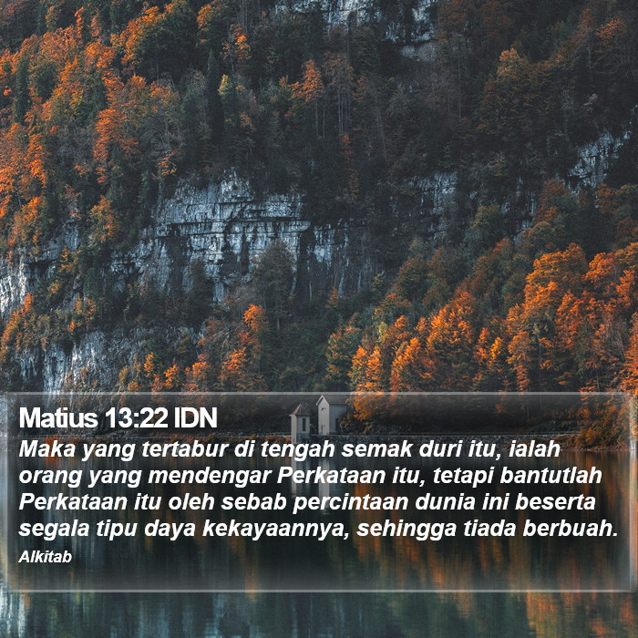 “Yang ditaburkan di tengah semak duri ialah orang yang mendengar firman itu, lalu kekhawatiran dunia ini dan tipu daya kekayaan menghimpit firman itu sehingga tidak berbuah.”