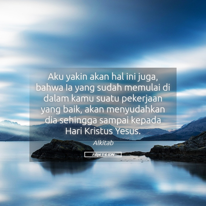"Akan hal ini aku yakin sepenuhnya, yaitu Ia yang memulai pekerjaan yang baik di antara kamu, akan meneruskannya sampai pada akhirnya pada hari Kristus Yesus:"